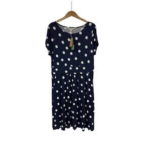 Boden Amelie Jersey Dress Navy Blue Polka Dot Soft Jersey Viscose Womens 14R New