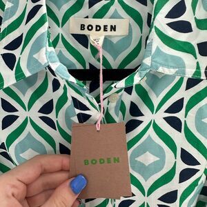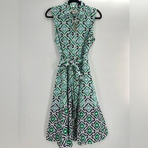 Boden Amy Sleeveless Shirt Dress Green Tambourine Diamond Wave Size 10P Petite