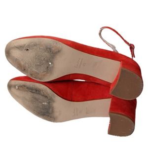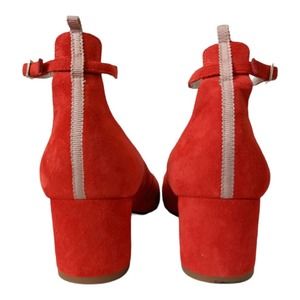 Boden Ankle Strap Suede Block Heel Shoes Buckle Closed Toe Red Women's Sz EU 40