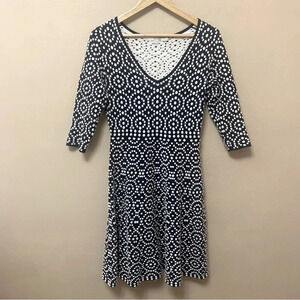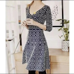 Boden Annabel Fit and Flare Textured Dress in Navy and Ivory Size 6