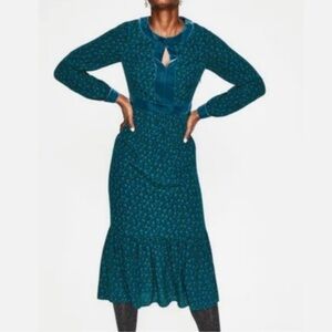 Boden Annabelle Midi Dress in Chatsworth Green Vine with Blue Velvet