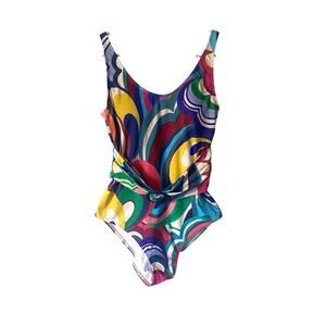 Boden Atrani Belted One Piece Swimsuits size 8 Blue Multicolor
