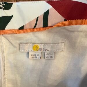 Boden Aubrey Cotton Midi Dress Pockets Ivory Floral Leaf size 10L