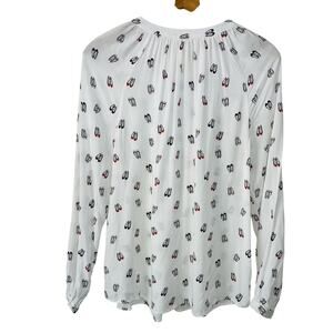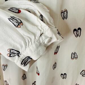Boden Ballet Flat Novelty Print Lightweight Hidden Buttons Blouse Sz 10