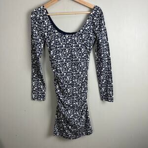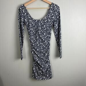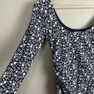 Boden Ballet Scoop Neck Blue Floral Ruched Bodycon Sheath Jersey Dress Long Sleeve 2 Petite 2P XSP PXS