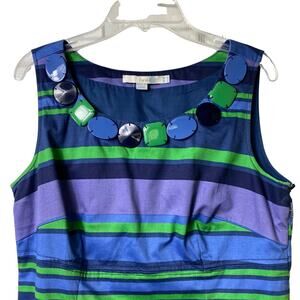 Boden Beaded Blue Purple Green Striped Sleeveless Sheath Dress Sz4L (2433)