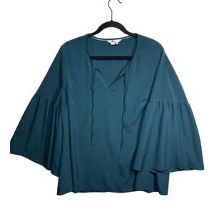 Boden Bell Sleeve Blouse Boho Keyhole Neck Flowy Relaxed Teal Green W0196 Sz 14