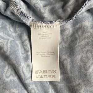 Navy and white jersey dress featuring a stylish pattern and yellow accents. Perfect for any occasion.