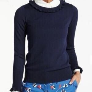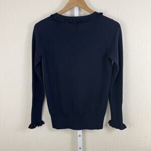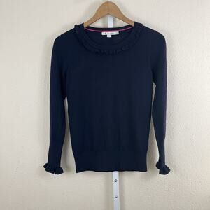 Boden Bernadette Ruffle Trim Wool Blend Sweater Womens Size 4 Navy Blue