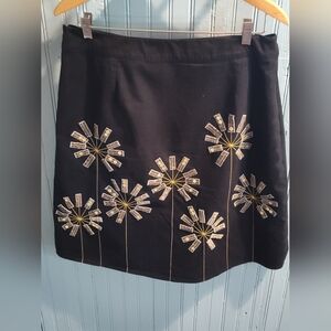 Boden Black A-Line Midi Skirt With Ribbon Sequin Flower Detail | Cotton | 12R