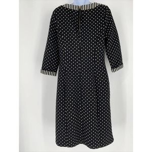 Boden Black Cream Polka Dot Shift Dress Pockets 3/4 Sleeve Retro Sz 8 Pockets