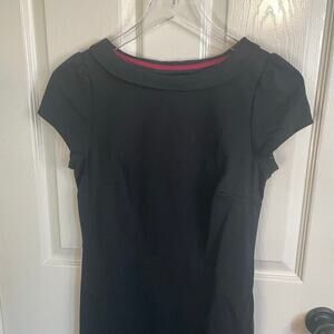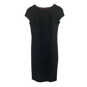 Boden Black Dress Cap Sleeve Midi Length Sheath Dress Boat Neckline Size 6