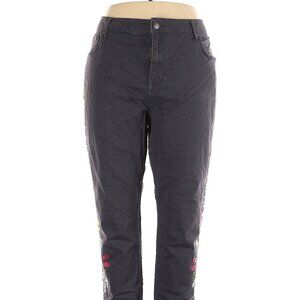 Boden Black Floral Embroidered Girlfriend Jeans Women Size 16/18L US, 20L UK. The product is a pair of Boden Black Floral Embroidered Girlfriend Jeans in a women's size 16/18L US or 20L UK. These jeans feature a solid charcoal gray color with embroidered accents, a high rise fit, and a straight leg style. Made of medium wash denim, these plus-size jeans are machine washable and have a 5-pocket design. The brand, Boden, is known for its bohemian themes and comfortable fit, making these jeans a versatile and stylish addition to any wardrobe. Made in Türkiye, these jeans are suitable for all seasons and offer both style and convenience.Stylish Multicolored floral embroidery down the side of each leg. 5 pocket styling. Belt loops. Zipper and button close at waist. Very good condition with no stains or holes. Bolden is a well known, high quality, best-selling brand that is in high demand.