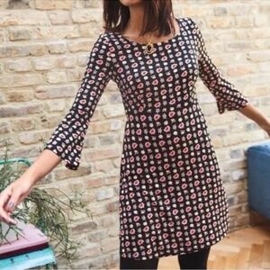 Boden Black Floral Miriam Bell Sleeve Jersey Tunic Dress Size 8 Long