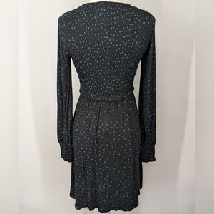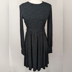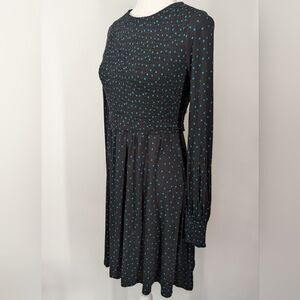 Boden Black Green Polka Dot Long Sleeve Smock Bodice A-Line Knee Length Dress 6