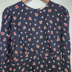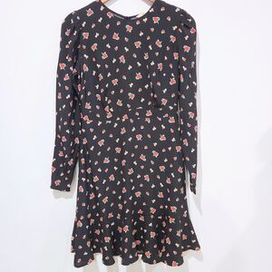Boden Black Long Sleeve Flippy Mini Rose Pop Dress Size 2R Bloomcore Feminine