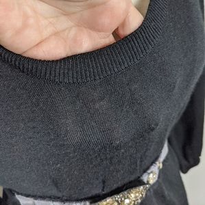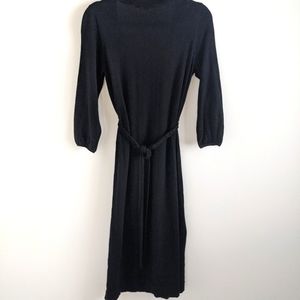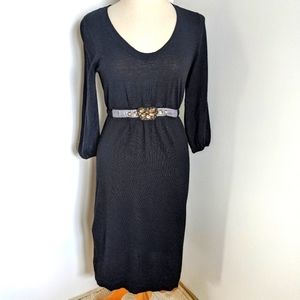 Boden Black Scoop Neck Wool Sweater Dress with Bling Belt 6 Fall Monochromatic