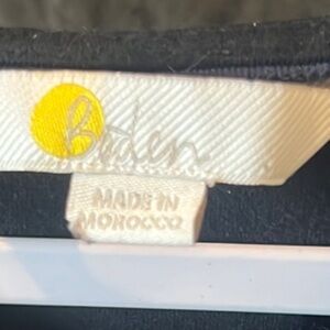 This black sheath dress by Boden is perfect for a casual social event in the spring or summer. It features a classic peter pan collar, ruffled accent on shoulder and long sleeves, complemented by a crew neck for a timeless appeal. The pull over dress ensures a flattering fit, making it a stylish choice for any occasion. Gartered waistline that is best for those warmer days for a relaxed fit. Viscose blend
