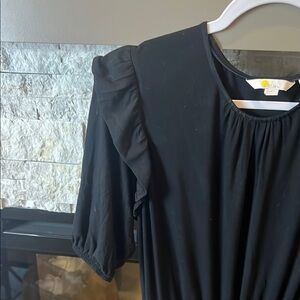 Boden Black Sheath Dress with ruffled shoulder and Long Sleeves size 8