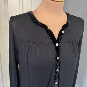 Boden Black Velvet Trim Bell Sleeve Nadine Top Witchy Whimsigoth Goth Holiday