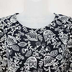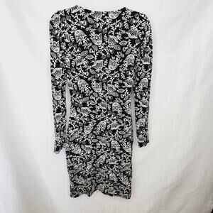 Boden Black & White Floral Long Sleeve Ruched Jersey Mini Dress Women's size 12L