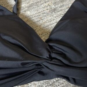 Chic Boden bikini with a sleek black top and colorful patterned bottoms. Ideal for beach days.