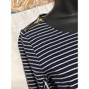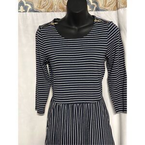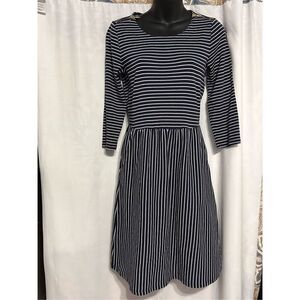 Boden Black and White Striped Midi Dress