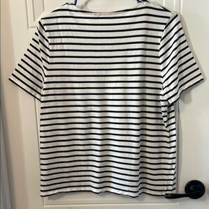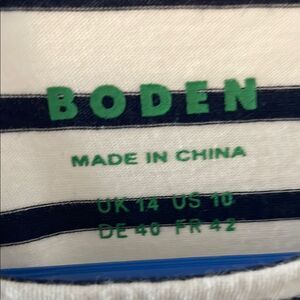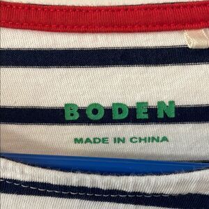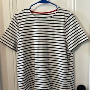 Stylish black and white striped tee by Boden. Features a classic design with a round neckline.