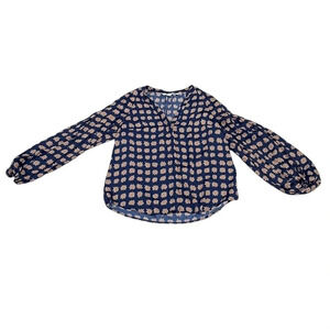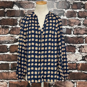 Boden Blouse Long Sleeve Blue Gold Star Top Size 6