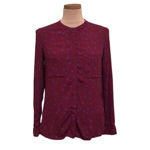 Excellent condition no stains rips or fading. Long sleeve, crew neck, button down shirt with pockets. 100% viscose. Wine red with royal blue flowers.