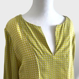 Boden Blouse Women's Size 12R Carey Yellow Geometric Long Sleeve Silk Boho Top