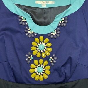 Boden Blue Color Block Floral Beaded Jewel Sheath Dress Side Zip business casual