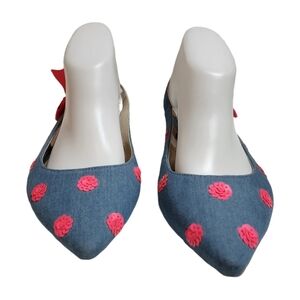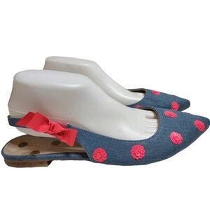 Boden Blue Denim Pink Sequin Pointed Toe Sling Back Flats Size EU 41