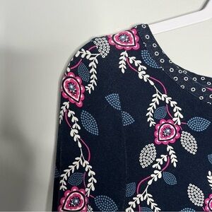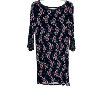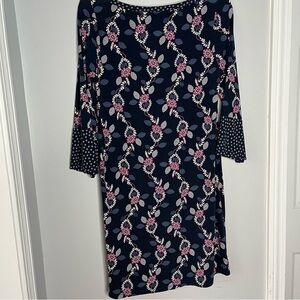 Boden Blue Floral 3/4 Sleeve Jersey Dress Size 8 Long Viscose Blend.