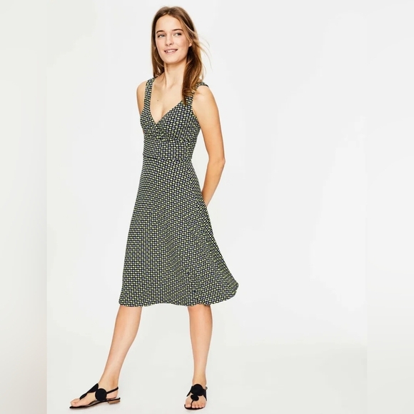 Boden Blue Green Apple Print Stretchy Casual Flowy Willa Midi Dress Size 6 Long