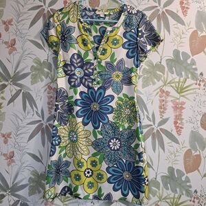 Boden Blue Green Yellow Silk Floral Vneck Mini Sundress Dress Women's Size 4
