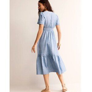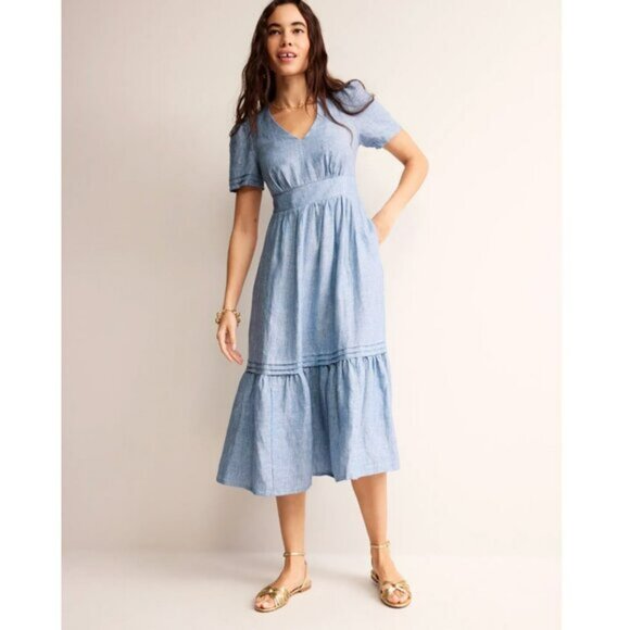 Chic blue midi dress by Boden. Features short sleeves and a tiered skirt. Perfect for casual outings. I took the tags off but never actually wore it.