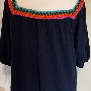 Boden Blue Multicolor Crochet Trim Top Romanticcore Festive Boho Preppy Size 12