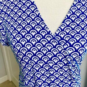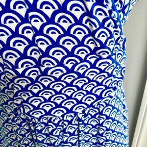 Boden Blue Shell Geometric Design Short Sleeve Long Midi Dress Size 14P