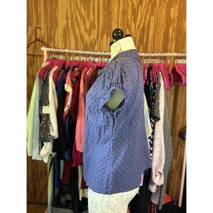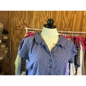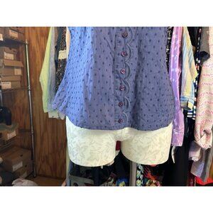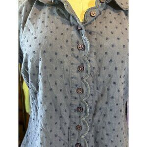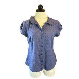 Boden Blue Textured Short Sleeves Scalloped Button Down Collared Blouse US 8