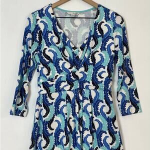 Beautiful blue white casual dress by Boden. Long sleeve dress and a v-neckline..
