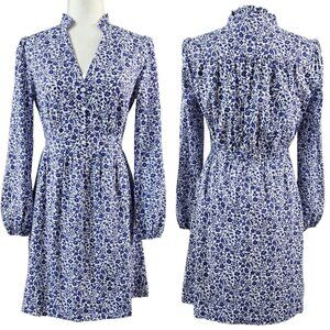 Boden Blue White Floral Notch Neck Mini Tea Dress Romantic Ditsy D0121