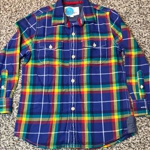 NWOT. This Boden button-down shirt features a vibrant plaid pattern in blue l, yellow, red and green, perfect for a casual and playful look. Made from a soft 100% cotton fabric, it offers comfort and style for everyday wear.