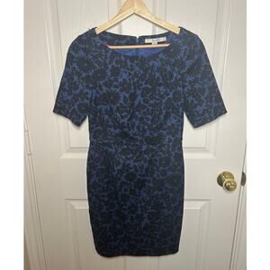 Boden Blue and Black Floral Patterned Structured Sheath Dress