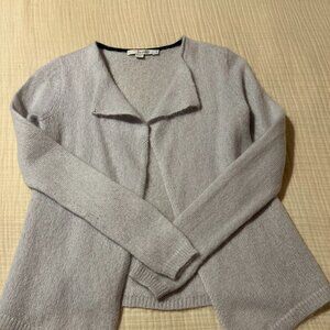 Open front Nylon, Mohair, and Wool Boden sweater size XS. This sweater runs small and the color is light bluish gray. No clasps down the front at all and the sweater is in used very good condition. Smoke free home. Feel free to message me with questions or more pics.