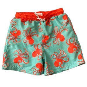 Boden Boys Swim Trunks Turquoise with Orange Octopus, EUC, size 4-5Y, 110 cm