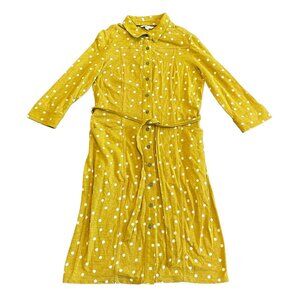 Boden Bright Yellow Polka Dot Dress Button-Down w/ Belt 3/4 Sleeve Size 8R Women