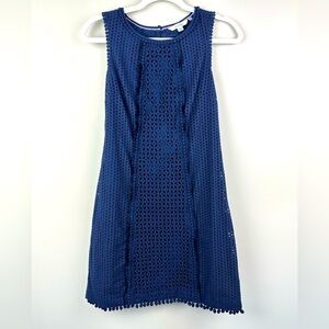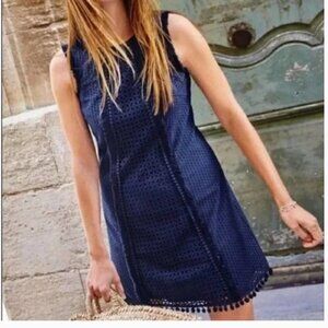 Boden Broderie Dress Navy Eyelet Pom Pom Sleeveless 4