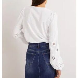 Boden Broderie Insert Long Sleeve Jersey Top White 6 Embroidered Preppy Cut-Out