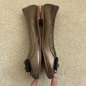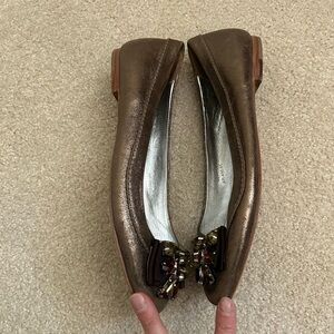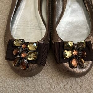 EUC pair of bronze colored flats from Boden in a size 41. These shoes have a cute chunky embellished detail on the toes. No stains or flaws!